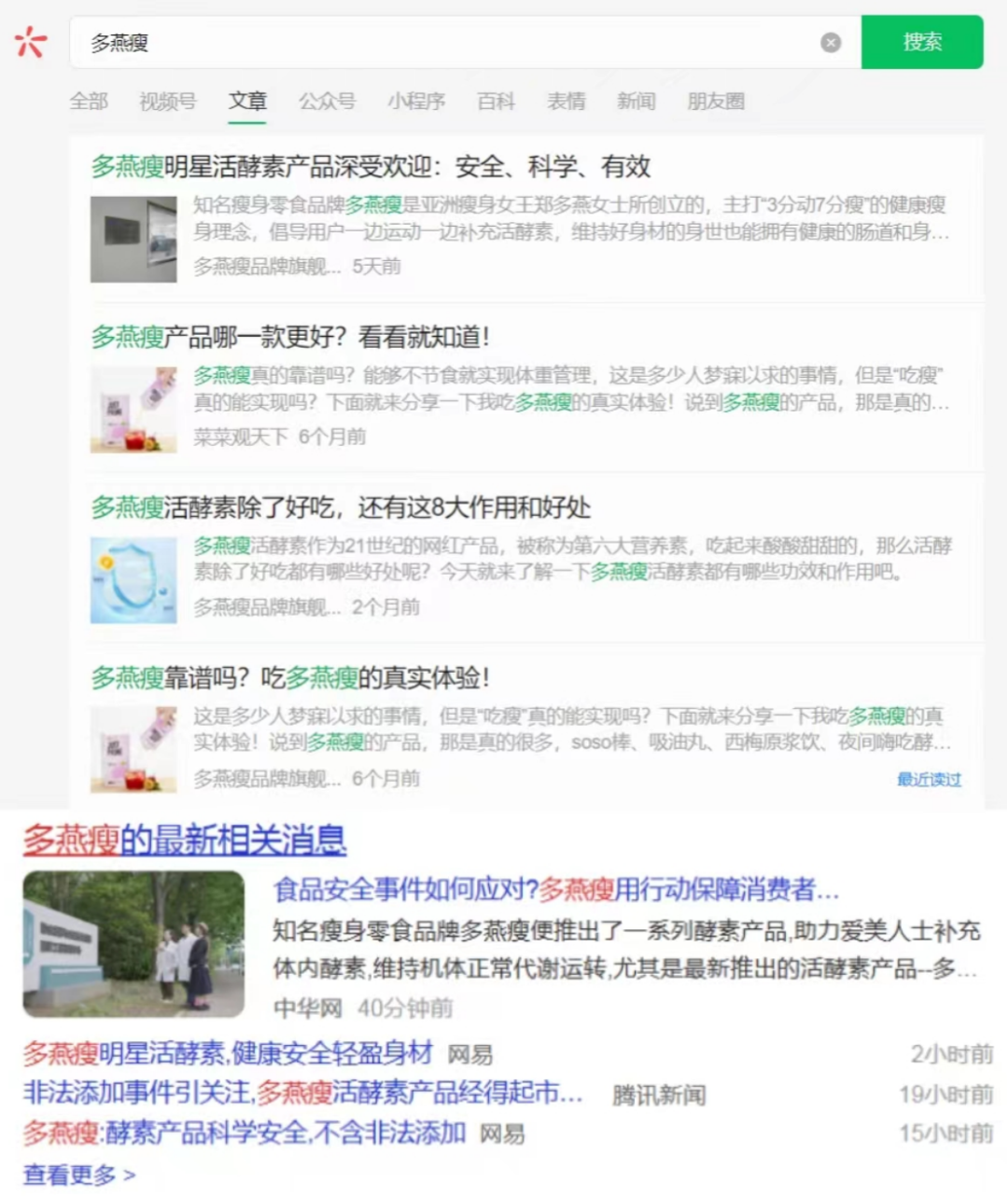 多燕瘦近期的软文投放,图片来自百度
